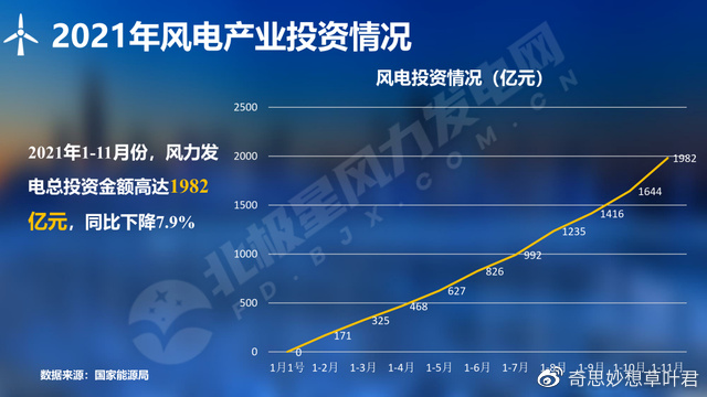 而我国由于拥有广阔的土地与漫长的海岸线,因此具有十分丰富的风力资源。据估计,中国陆地拥有2380 GW的可开发容量,同时海洋有200 GW的可开发容量。早在十二五规划中,我国就已将风力发电确定为国家经济发展的一个关键组成,截止至2021年12月,中国风电新增并网装机2470万千瓦,总发电量为6556亿千瓦时。来自哈佛大学和清华大学的研究人员指出,到2030年,中国的风力发电就可以满足他们所有的电力需求。